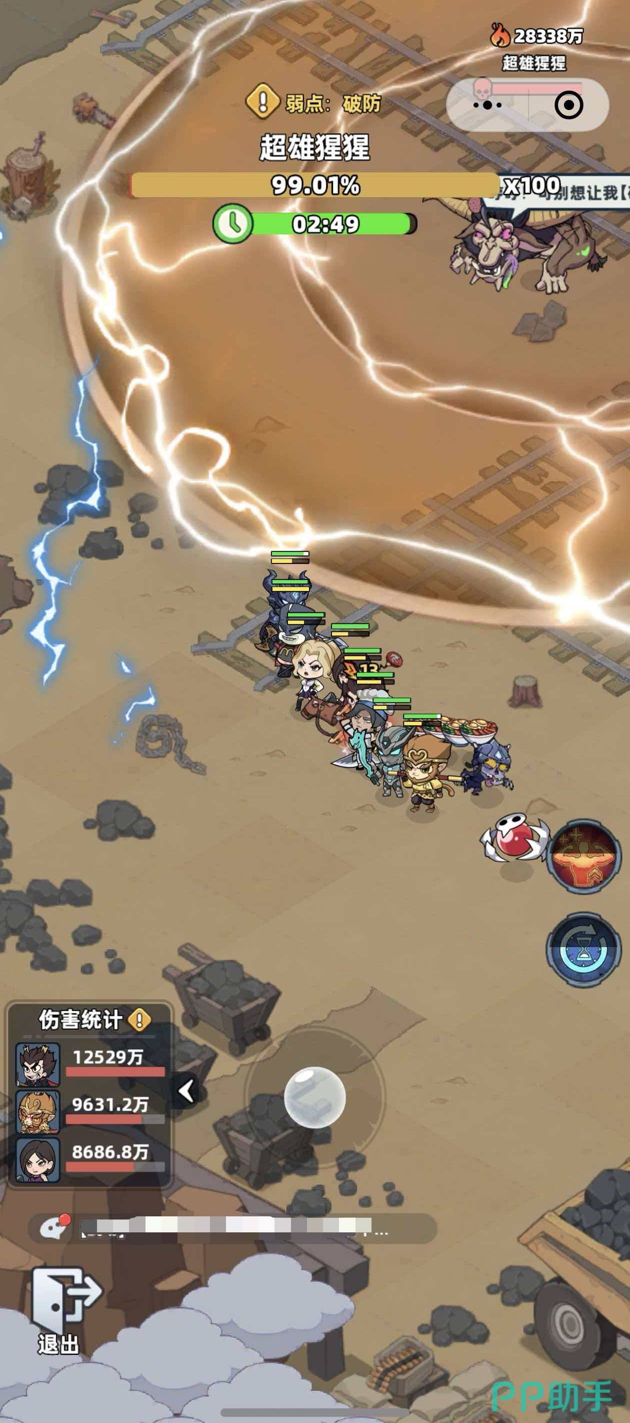针对其高防御特性,官方明确标注其核心弱点为“破防”。这意味着常规输出难以快速削减其血量,必须优先瓦解其防御结构。目前可稳定触发破防效果的幸存者仅有两位:首充即送的机甲战士,以及通过常规招募获取的剑术大师。二者任选其一编入主力阵容,是攻克该BOSS的前提条件。此外需注意:战斗中击破场景内所有矿石单位后,超雄猩猩将立即获得“高防增益”状态,此时若未及时施加破防效果,后续输出效率将大幅衰减。另需警惕雷阵机制——该技能开启后,角色在雷区内的任意位移均会触发高额雷电伤害,务必保持静止或提前规避至安全区域。