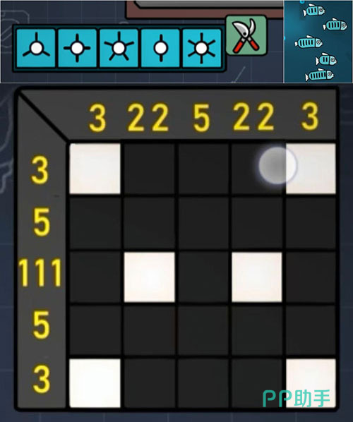 随后面对五旋钮调节谜题,正确调整后取得“枝条剪刀”。将初始获得的“种子”植入对应容器,再以“枝条剪刀”修剪生长出的植株,获得“花”。完成涂数类逻辑题后,可获取“人物卡4”。