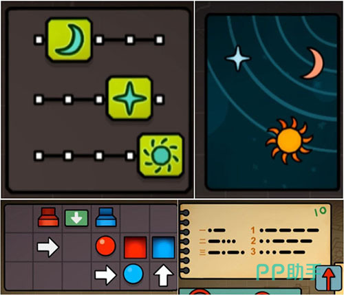 完成“人6”日月星三重天体运行谜题,可同步获取“小刀”与“人物卡7”。通过进球类动作小游戏获得“指针”,再以“小刀”剖开先前取得的“苹果”,露出隐藏的“人物卡8”。最后将“指针”装配至表盘结构上。