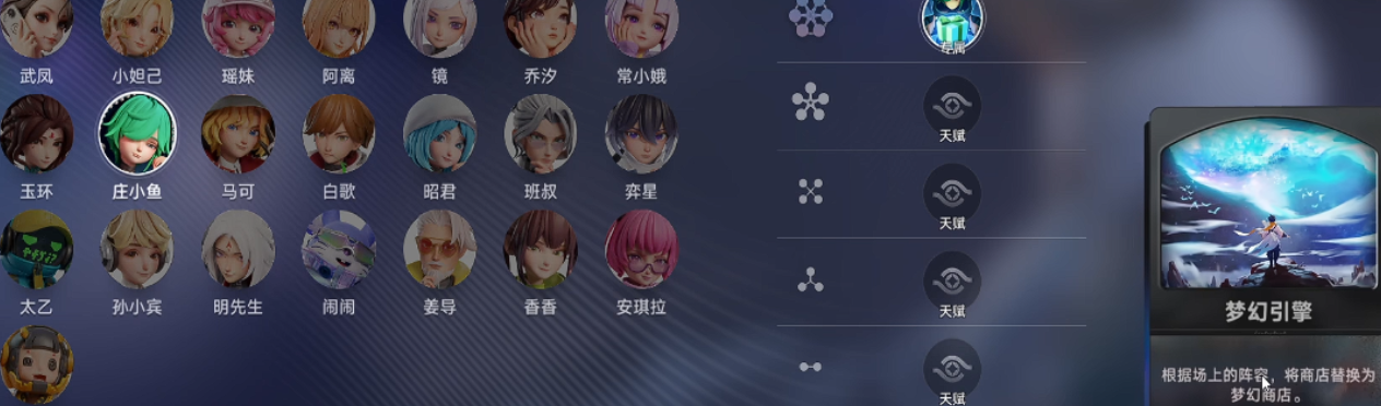 如果玩家喜欢随机应变且能绝地翻盘的棋手,那么庄小鱼就是你的不二人选。她所拥有的技能梦境游戏是充满不确定性的,每一次升级都会得到一张随机产生的效果牌来改变战局。而它的秘技美梦成真就形成了一套强大的容错系统,当面对残血对手的时候,专属的梦幻引擎卡就会自动返还。败者食尘般的机制大大提高了队伍的生存下限,在逆风局里仍然有重整旗鼓、绝地反击的机会。