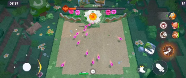 BOSS战有四种技能需要注意。第一个是荆棘召唤,荆棘会从地面破出来,踩到就会受伤,看到地面有异动,就赶紧移开。第二个是叶片挥砍,攻击的是前方扇形范围,这个比较好躲,站到侧面或者后面就行了。第三个是狂风制造,范围比较大,会把玩家吹飞打乱站位,这个比较难躲,被吹飞之后,要快速调整回来。第四个是狂暴射击,BOSS进入狂暴状态之后,会向前方射出大量种子子弹,伤害是多段的,密度很高。这个阶段,要注意不要站在BOSS正前方,尽量绕到侧面输出。