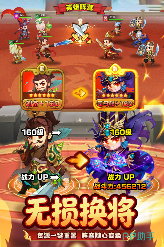 对新手主公而言,最关心的是怎样组建一支强大的队伍。游戏有很高的自由度,能实现魏、蜀、吴五方民族各有各的自由组合。更重要的是,游戏具有无损重置的功能,即你所犯的错误几乎可以被忽略。目前阵容推图遇到困难的时候,立即把所有的武将等级和资源全部重置掉,将兵力重新分配给其他武将身上。游戏系统设计出一种可以让玩家在游戏中自由尝试不同的流派,菜刀队追求极致的爆发力,消耗流主打控制与续航,玩家在游戏中找到自己的节奏,真正地实现策略的至上。