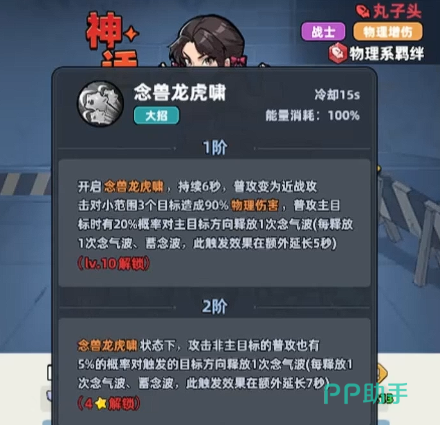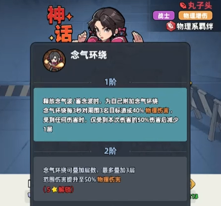 如果大家想要培养丸子头的话,她达到1星的情况下可以解锁的是一个被动功能,叫做念气环绕,这个功能解锁了以后,她就会有足够多的攻击以及防御属性,此时在被动一星的情况下,她可以通过释放自身技能,然后在后续的3秒时间之内,给周围的敌人造成范围型的伤害,同时她自身是可以获取50%的减伤防护护盾,这个护盾对于他来说是非常重要的一类生存机制,如果需要这方面能力的话,这个护盾是一定要用出来的,如果将她提升到二星的话,那么她触发的这个被动叫做雷龙出海。