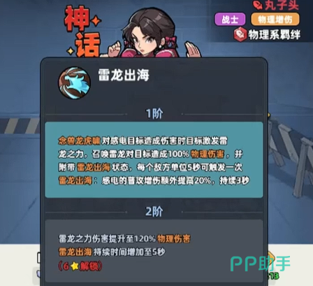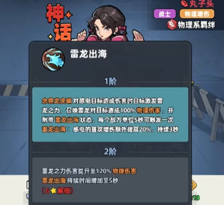 雷龙出海也是目前对于他来说非常强势的一个爆发能力,对于有感电状态在身上的目标来说,是可以额外带来再一次的百分百伤害,而且这里附加了雷龙状态的话,敌人受到的普攻伤害上面也会有20%的增伤,所以对于丸子头的完整输出效果来说,她的提升到二星级的时候,目前能够达到的整体输出效果是提升的挺快的,选择装备搭配的时候,建议以攻击以及暴击类型的属性为主要搭配效果,这样的话可以为她带来的提升是最多的。