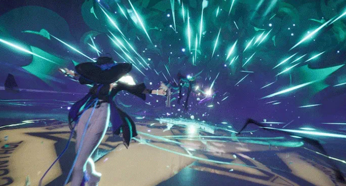 瞄准键也有对应的机制,按下去会进入瞄准状态,然后往准心方向射出一发子弹,打出一次单体灵属性伤害。这个操作相对来说比较直接,适合需要精准输出的时候用。