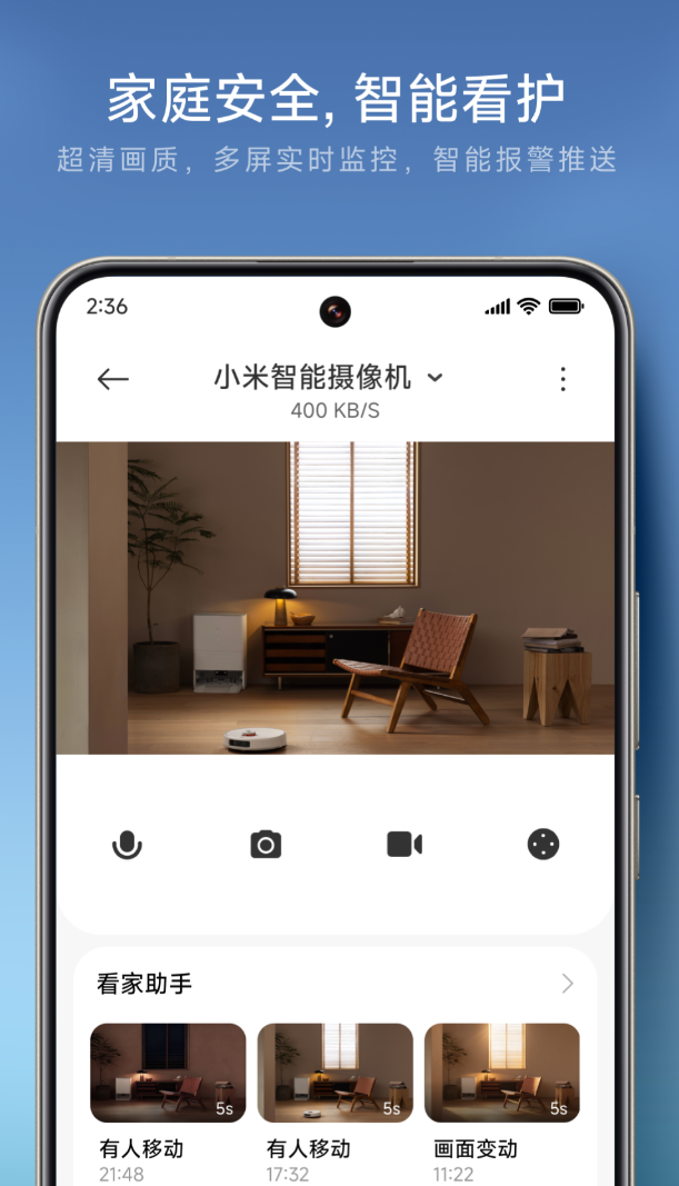 两部手机,安卓或者iOS都行,配对完就能组成一套远程监控,不需要额外买硬件。镜头角度可以手动调,婴儿床、客厅、门口这些位置按需对准就好。双向语音走的是低延迟方案,远程喊话不会有明显的回声延迟,出差在外和家里老人说话也比较自然。分辨率从30fps到1080P都可以切,流量不够用的时候往下调一档也还能看清楚。