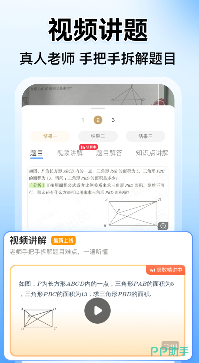 拍一下题目,解析马上出来,答案准确率高,背后是专业教师团队整理的内容,解题思路写得规范清楚。题库收录范围很广,从基础练习到竞赛题都有。真人教师对着题目讲解,学生看完基本能搞明白卡在哪里。古诗词模块把小学到高中要背的内容都收进去了,配了背景介绍和赏析要点。