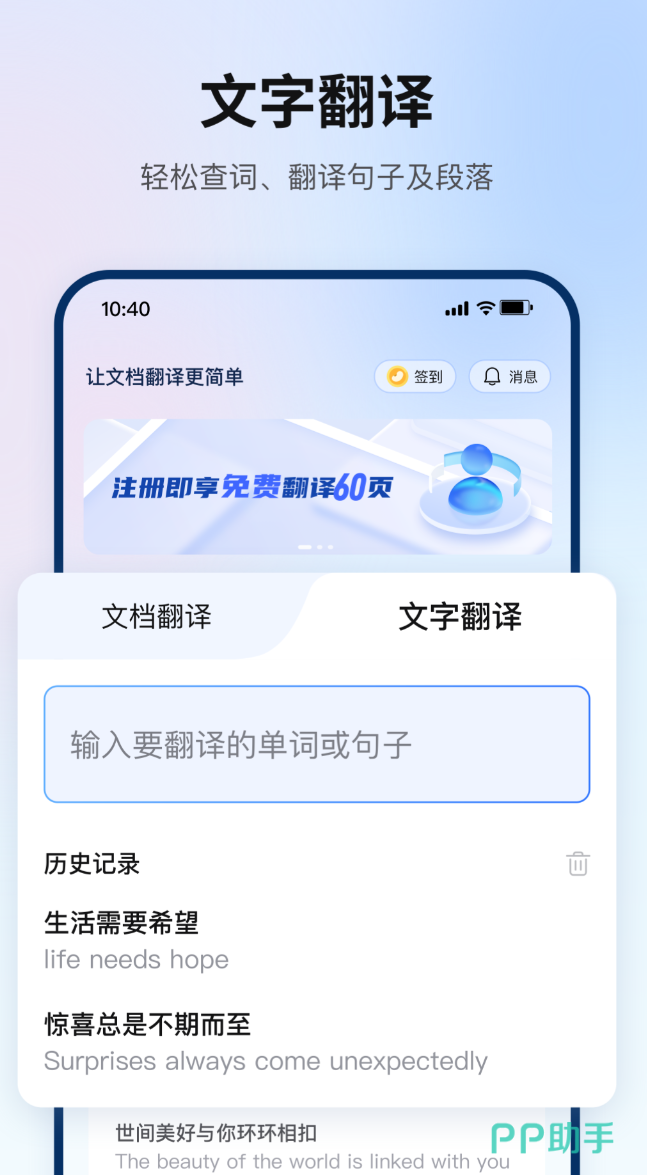 支持多种语言,中英互译的准确度高的不得了,译文读起来竟然不会有明显的翻译腔。离线词库是一个实用功能,没有网络的情况下,基础词汇和常用短语照样能翻,出行途中断网也不至于两眼一抹黑。双人对话模式支持实时语音互译,配合人声播报,和当地人沟通基本够用。