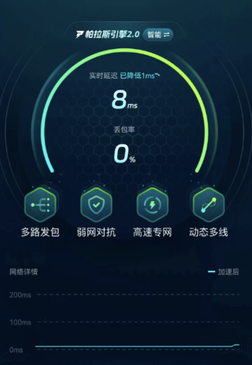 该工具由阿里巴巴灵犀互娱旗下技术团队研发,与九游、交易猫共享同一底层加速架构。其核心加速引擎支持TCP/UDP双协议动态探测,具备毫秒级网络质量评估能力,可实时识别最优传输路径并完成自动切换。界面同步显示当前延迟值、丢包率、线路稳定性评分等关键参数,帮助用户直观掌握实时网络状态。