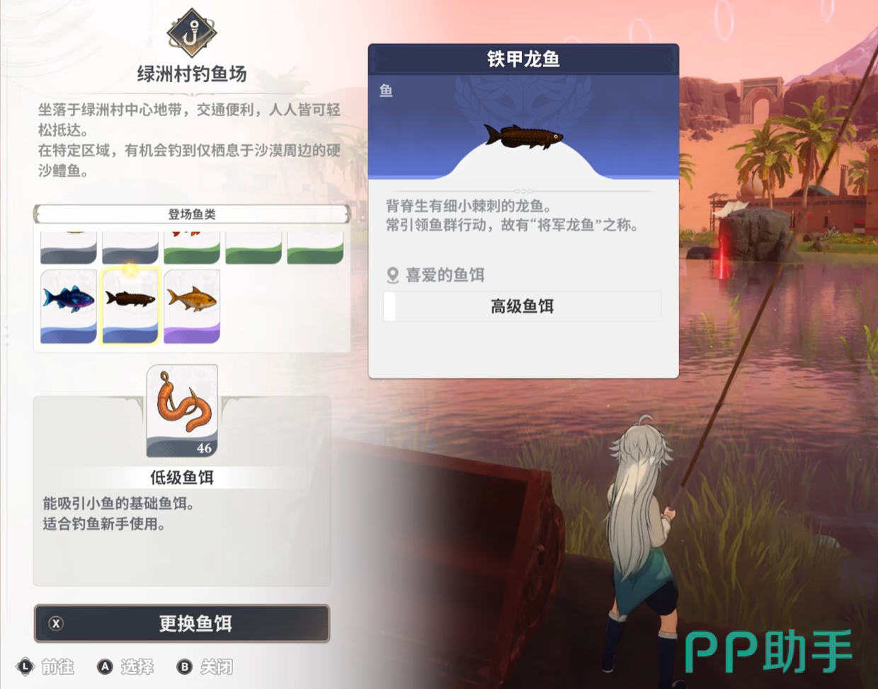 离开湿润的森林和海岸之后,大家就会把目光投向干旱的沙漠地区,那里生活着铁甲龙鱼。正如它的名字所暗示的那样,它有像铠甲一样的坚硬鳞片,可以适应绿洲村特有的水域环境。玩家要去绿洲村的绿洲村钓鱼场垂钓。