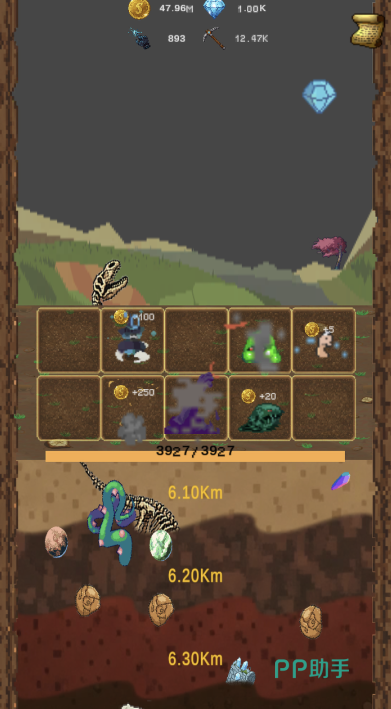 玩家开启纵向挖掘,期间会遇到地球中的各种岩层和物质,充分了解地球是由哪些物质构成。挖掘期间能收集黄金、钻石等各种稀有资源,用来升级钻头和装备,让玩家挖掘速度变得更快。各种角色都支持招募,还能建立起全自动产业链,显著提升挖掘和采矿速度,玩家真正体验到坐享其成。