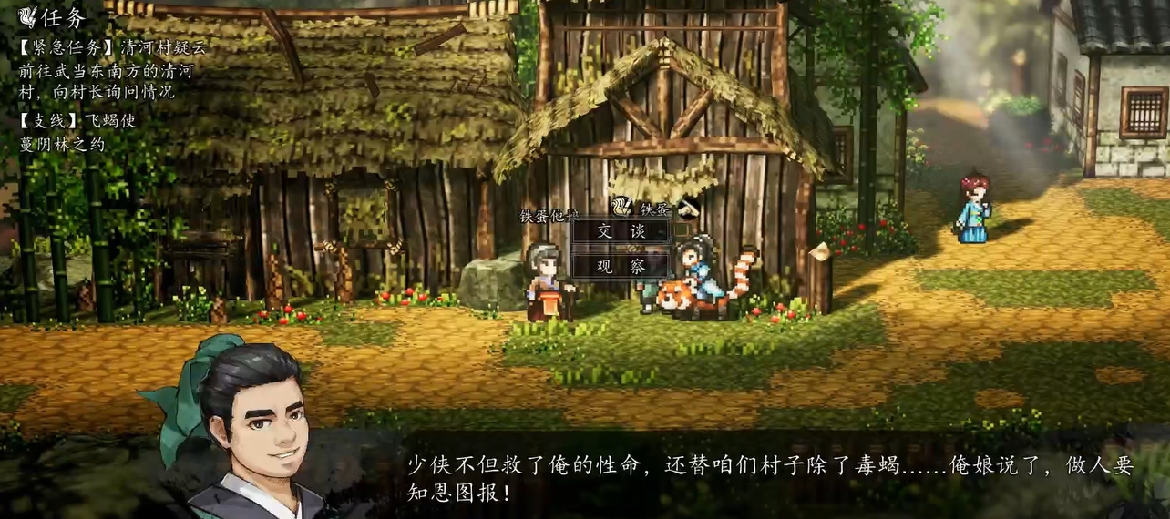 想要把铁蛋招进队伍,需要先去清河村。在他附近会有一段母子对话,触发之后会出现一个任务,玩家选择帮忙解毒就可以了。这个任务跟异种金蝎的剧情有关联,不管走的是药圣线、乌娜线还是商人线,只要把异种金蝎提交了,之后回到清河村就能正式把铁蛋带走。入队流程不算复杂,就是要注意别跳过那段对话。