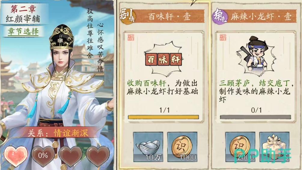 如果大家对其中的红颜角色非常了解的话,其实在第二关就会知道这里说到的红颜宰辅其实就是指的上官云儿,而在这里章节的名称当中也是叫做红颜宰辅的,所以算是第二章的主题,大家在其中也会看到这个名称代称的人就是上官云儿,上官云儿在游戏当中也是男扮女装的一个红颜角色,所以在这个章节当中,主线里面她就是男扮女装去做官,最后也是通过自己的努力坐到了宰相的位置上面,虽然是女子但总是身穿官服,所以在这里的话,被称作为红颜宰辅,后期她的剧情当中也会从一开始的跟主角互相挑衅,到后面慢慢的开始学会好好相处。