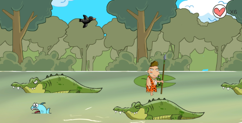 玩家要操控野人角色开启一段特别的冒险体验,这个野人形象和大家印象里的差不多,衣着十分朴素,活动的场景也大多是自然环境。游戏为了让玩家玩得开心,在角色生存探索的过程里,设置了不少惊险环节,途中会碰到各类小动物,既有鳄鱼,也有小鸟,玩家需要不断躲开危险,整体设计思路很有新意,整个过程紧张又有趣。