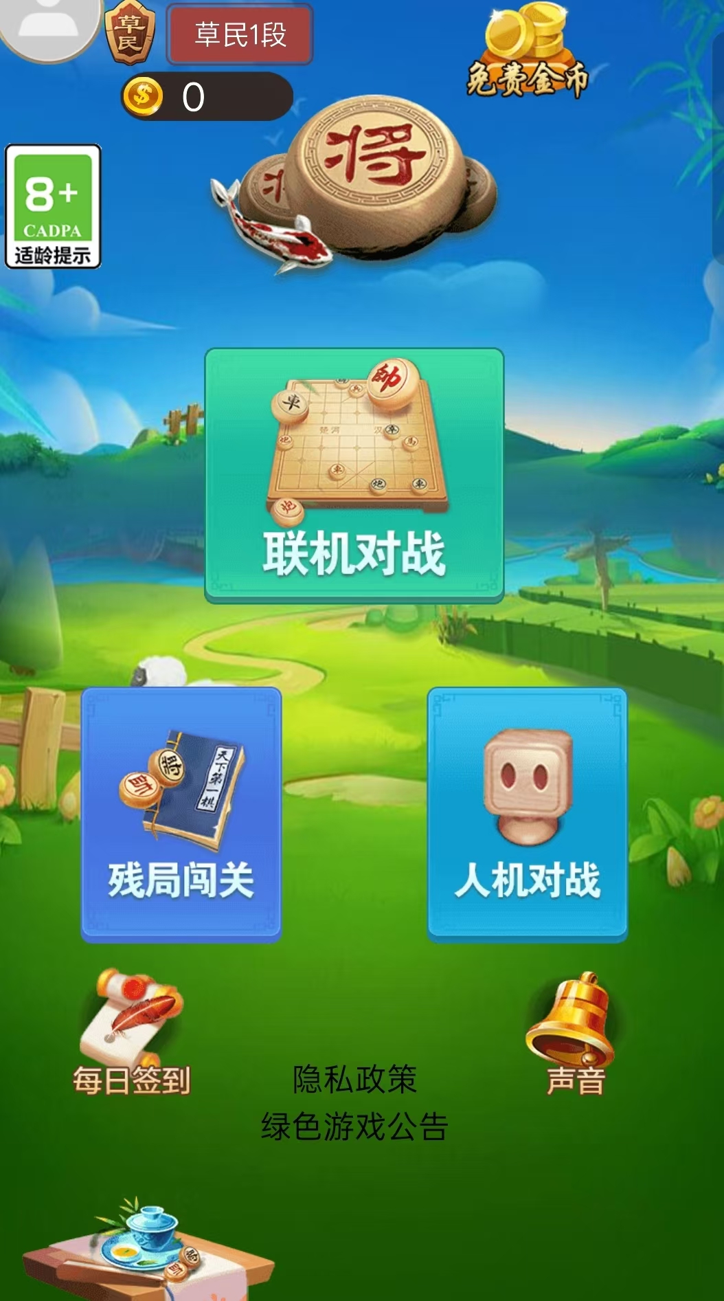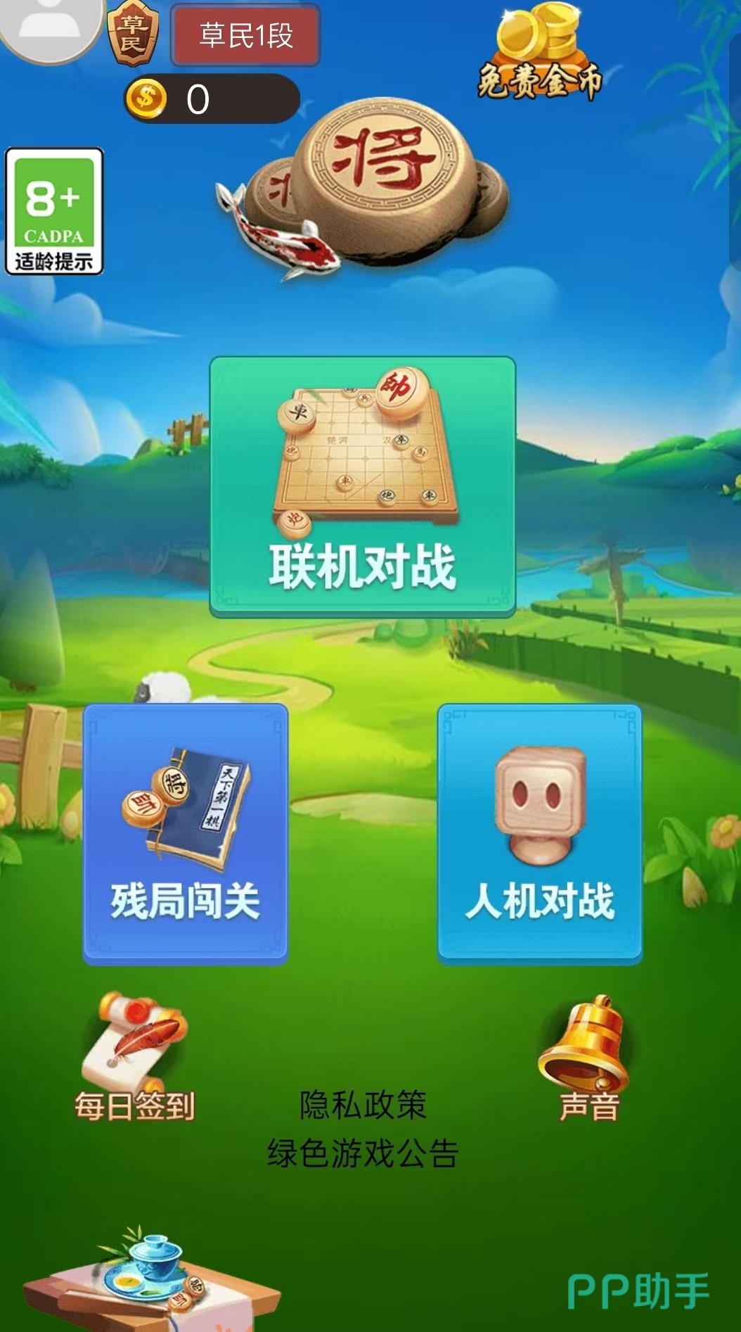 天天爱象棋就像游戏名一般朴实无华,点击进入游戏后,界面将只呈现出三种级别的棋场。也就是游戏根据各玩家对象棋的熟练程度分成的三种选择,分别是不太熟练的新手场,中级熟练的初级场以及高手云集的大师场。小编认为这样划分不同的玩家简直是太方便了,有助于懵懂玩家了解自己的下象棋水平,进而针对性地提升棋艺。