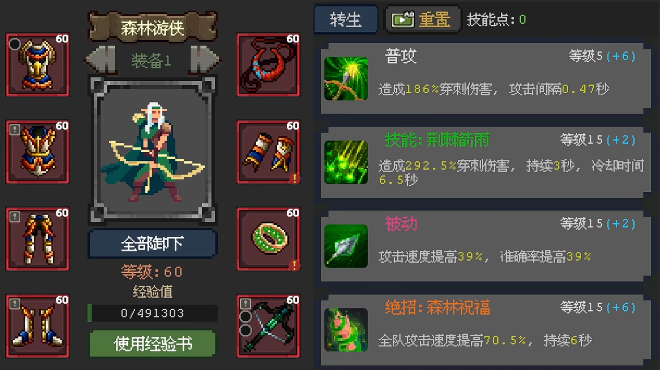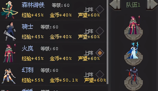比如在新手时期大家就可以玩儿一个平民阵容,这个阵容里面大家可以用骑士加森林游侠、火岚、刺客、毒夫人来搭配,其中用到的输出角色就是火岚,他在给我方带来足够的输出强度时,群体的功能跟单体的功能同时具备,而且这两方面的伤害能力都是比较强的,另外加一个毒夫人的话,在这里还可以保证我方群体伤害有足够的补充能力,并且这个角色在30关以后就可以免费解锁,所以大家在30关以后遇到小怪比较多的关卡都可以上毒夫人,另外加上了刺客的时候,大家通过看广告就可以解锁这里的血刺,打前期的话作为副输出可以带来的单体爆发也不如后期,30关以后就可以利用毒夫人的效果来进行替换,而森林游侠的话提供的各种攻速增益,目前大家用处也比较多。