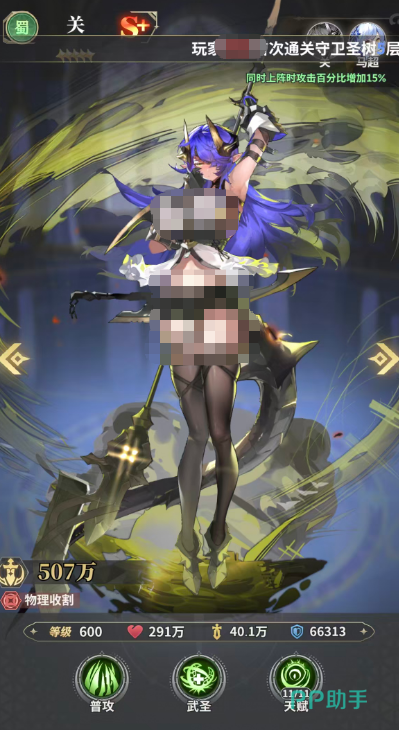 另外第三个大家可以玩儿的是关羽,关羽自身能力效果当中带有足够的劈斩能力,对单体敌人造成百分百伤害的时候,就会获取武圣层数,通过他的普攻大家也可以快速积累起来多层武圣的状态加成,而武圣这里的话,是可以给敌人带来单体300%左右的伤害数值,所以作为一个物理收割类型的技能效果,大家玩武圣的话就要记得后期如果成功击杀掉到敌人以后,再次普攻要选择一个比较好输出的目标才可以,而另外她在自身的提升星级之后,效果是根据队友来进行触发的,队友只要释放自身的普攻,关羽有20%的概率可以再次追加,那么她的每一层武圣层数在这里,通过这个追加都会让她额外带来8%的追击概率提升,所以每一个回合当中她的追击是可以连续起来的,最多情况下是可以追击5次的。