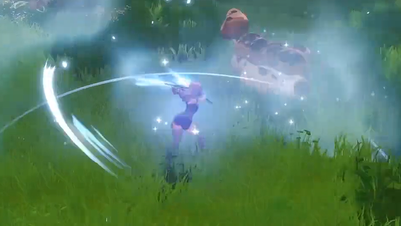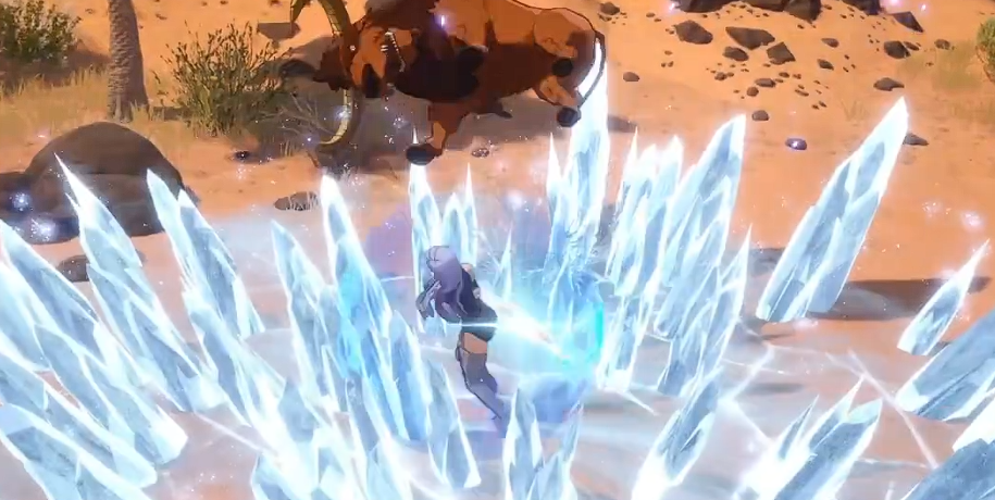 而在快速填充自己爆发能量的时候,要注意后期的冷却时间是多长,另外在技能效果当中,如果用她的核心爆发能力进行输出,这里搭配的是双剑武器的话,被动效果当中只要是敌人的血条后面出现冰条,而且冰条身上的数量已经达到满数值的话,那么这里她就直接可以对敌人产生冻结的效果,这里冻结一般是会有6秒的持续能力,所以这6秒如果大家切换她的输出能力,基本就可以让敌人一次带走了,普通攻击上面,杰莉卡可以带来的是4次连击,总计伤害上面也达到了107%的伤害数值。