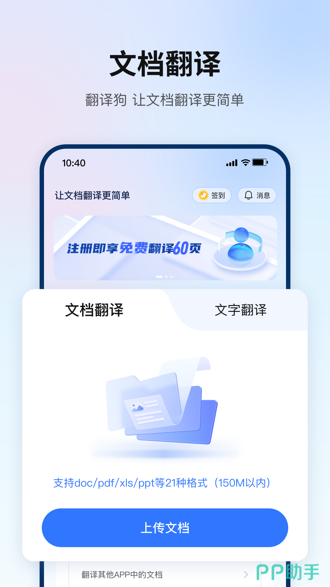还在为复杂的文档翻译头大?翻译狗来拯救你的“手残”!上传文件,点一下,坐等媲美人工的译文,排版跟原文件一模一样,省去排版烦恼。支持PDF、Word等20多种格式,文献、论文轻松翻。更有图片、语音、网页翻译,125种语言任你选。新用户免费,快来薅羊毛,效率翻倍,快乐起飞!