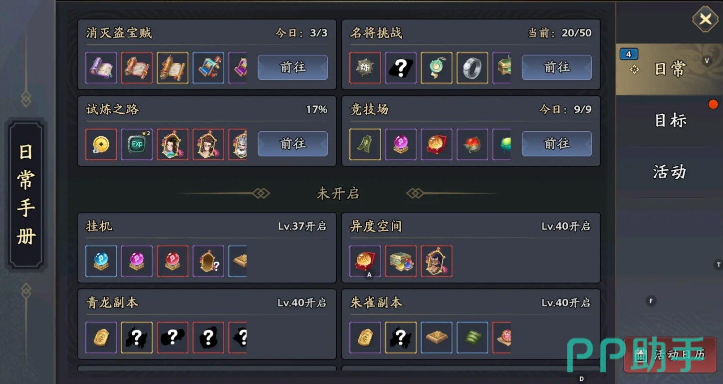 日常玩法中,“试炼之路”为高性价比资源产出渠道:该爬塔模式每日可重复挑战各层级,每层敌人配置不同,通关后除银币外,还可稳定获取武将信物——此类稀缺资源在其他途径中获取难度较高,故建议每日必清。中后期若需大量阵法石、重修丹等核心养成材料,则应重点提升竞技场排名。该PVP玩法不仅考验阵容强度与战术搭配,还设有阶段性挑战奖励,完成指定胜场数即可领取额外资源包。此外,限时活动如“消灭盗宝贼”“名将挑战”等难度适中,侧重时间投入而非硬性战力门槛,适合新手循序渐进积累资源。