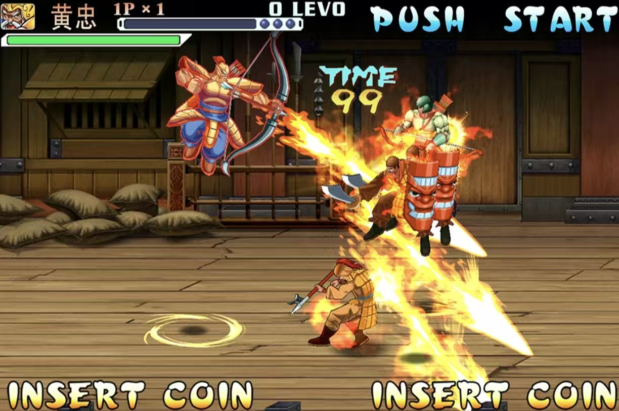 复刻街机格斗精髓,融合连招系统、道具投掷与场景互动机制。每位武将拥有差异化技能树与必杀技组合,支持自定义连段编排。创新房间对战模式允许玩家创建私人擂台,实时匹配或邀请好友切磋,打击反馈与镜头运镜强化动作表现力。