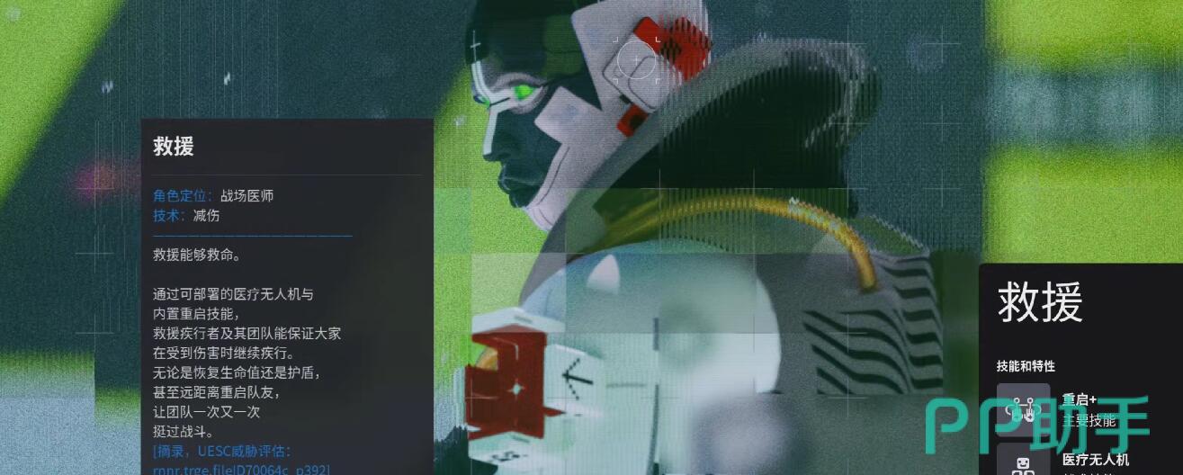 救援位列T0梯队,是当前版本中功能性最全面的辅助型角色。其核心优势在于高容错率与团队续航能力:二秒蓄力即可触发“重启”技能,将倒地队友原地复活;同时自带持续运作的医疗无人机,无需手动施放即可实现自我回血与队友远程补给,在持久战与团战拉锯中展现出极强的战略韧性。