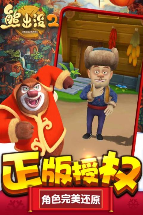 基于同名动画IP开发的一个竖版跑酷手游,玩家可以单指滑动控制熊大在森林、冰原等场景中奔跑,路上需要避开光头强设置的陷阱,收集金币和道具,还能在特定关卡拾取木槌、电锯反击,还原了动画当中的对抗情节。游戏收录了熊大熊二、吉吉国王等角色,而且还加入了美猴王、宇航员等带技能的角色皮肤供玩家逐步解锁使用。