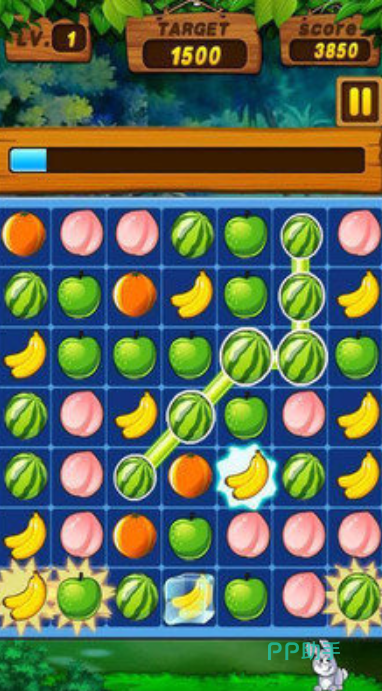 里面包含了各式各样的水果图案,需要把三个及以上颜色一样的水果连到一起,就能完成消除操作,游戏准备了数量丰富的关卡,每一关都有对应的分数标准,玩家在操作过程中达到规定分数,就可以继续挑战下一关。整体画面看着干净清楚,尽量一次性连接更多相同水果,能更顺利地完成关卡要求,体验起来轻松又简单。
