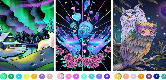 较为热门的填色游戏,各种线稿应有尽有,比如二次元美少女以及卡通动画等,有高级的填色工具,还有各种有趣的图形,玩家只需按照相应的数字就能够快速绘画出不同的画作,最终完成填色,另外还有超丰富的空白模板,只需利用手指点击就能够轻松完成涂色,这是当前非常出色的优质之选,无需绘画技巧,想玩就玩的解压游戏。