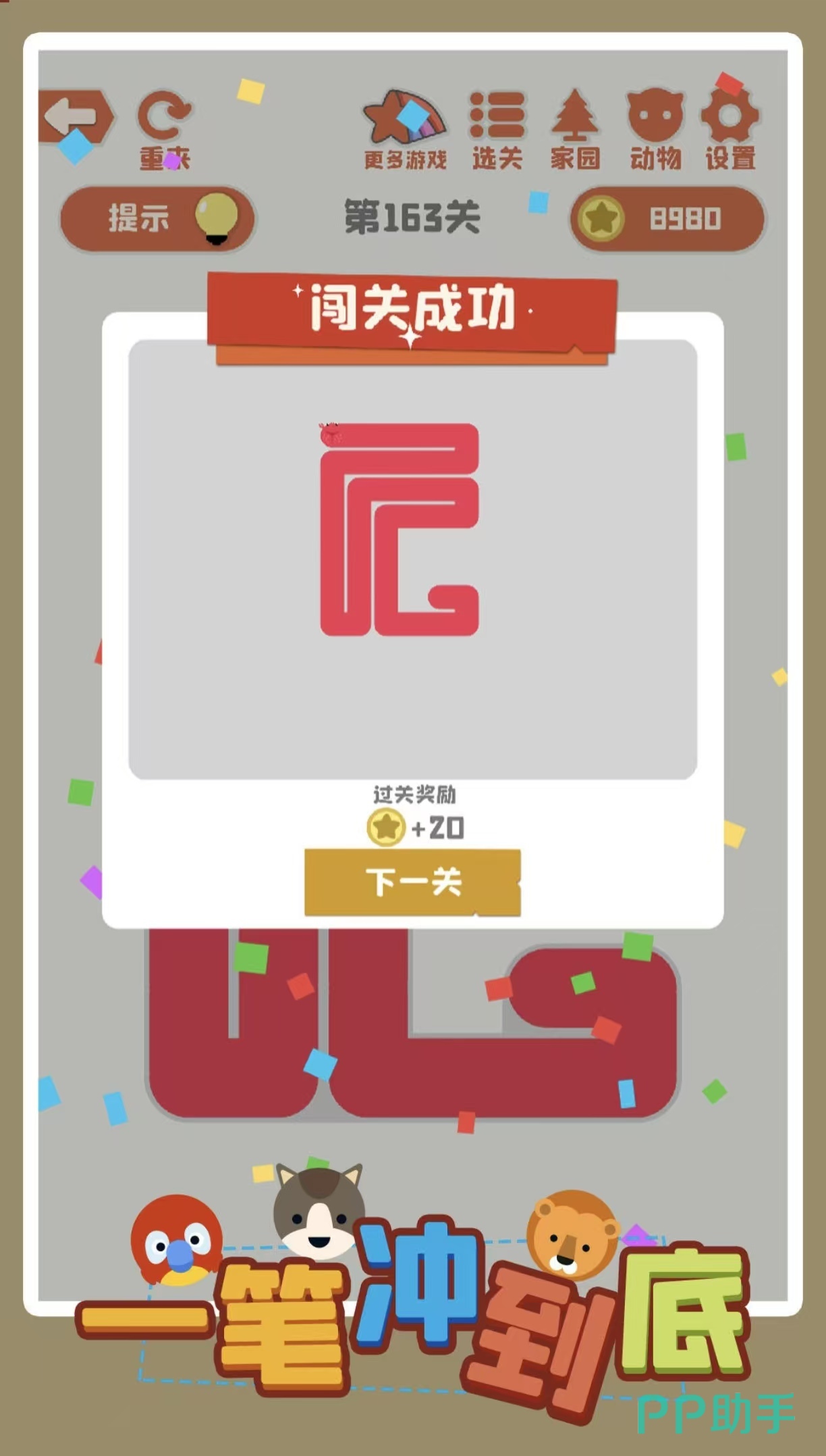 《一笔带过》使用一笔进行解密闯关,不断的通过滑动连接关卡内的图标,不能出现交叉和重复的现象。关卡内拥有很多的几何图案,并且图案会越来越复杂,可以使用跳过或者重试等功能。不断的通关可以收集到钥匙。解锁更多的游戏图鉴,挑战高难度获得更多分数,这里也运用了一些物理的方式划线,关卡内的图标是很多可爱的动物。