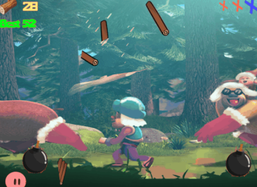 以经典的砍树为题材,将熊出没ip世界观展现得非常别致,每次砍中木头都能够成功获得分数,注意千万不要砍到炸弹,在探索的过程中会发现与我们经常玩的水果忍者是比较相似的,只是砍水果变换成为砍木头。玩家可以控制光头强在超大的森林当中任意探索,在熊熊生存的森林当中完成木头砍伐。