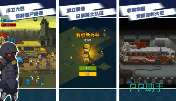 该游戏为2d策略塔防加卡牌经营手游,玩家将会驾驶大巴车在末世中穿梭,一边收集资源,一边培养精英战士建设防御设施,并抵御僵尸的攻击,并且游戏融合了卡牌养成,卡防布局和模拟经营的玩法,甚至还有独特的手电筒照僵尸小游戏,且其采用了像素卡通画风多样的武器,包括了加特林,火箭筒等等。都能够大范围瞬间秒杀僵尸,且游戏中还有随机事件哦。