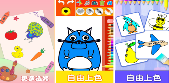 提供数百幅原创线稿,涵盖动物、交通工具、自然景物等主题。支持自由选色、画笔粗细调节与填色范围锁定功能,有效训练色彩辨识力、手部精细动作及专注力。界面无文字障碍,图标直观,3岁起即可独立操作。
