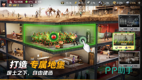 本作以深度模拟经营为核心机制,玩家需从零开始规划并扩建地下庇护所,合理调度幸存者从事采集、制造、科研等职能,同步升级防御工事与生活设施。支持组建多职业协作小队深入废土探索,收集稀缺资源锻造武器装备,有效抵御丧尸潮侵袭,实现可持续生存发展。