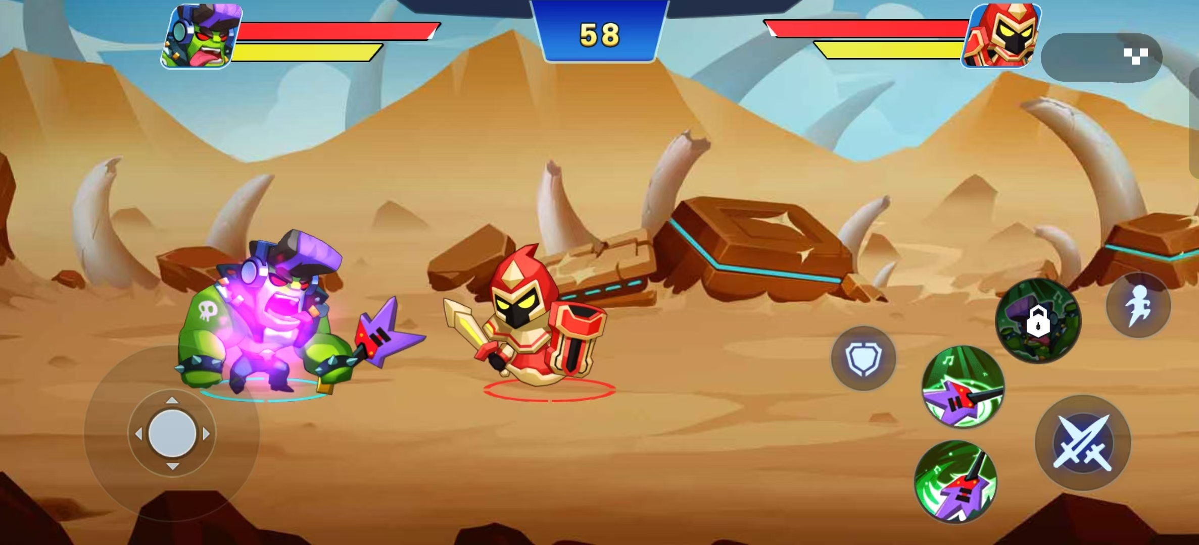 延续街机格斗快节奏特性,强调“热血”主题下的视觉张力与操作爽感。匹配对战采用动态地图生成机制,每局战场布局随机变化。玩家可主动开启防护盾格挡伤害,结合二段跳规避突袭,再以蓄力大招完成连段终结。配合高燃BGM与粒子特效,打造极具临场感的实时对抗体验。