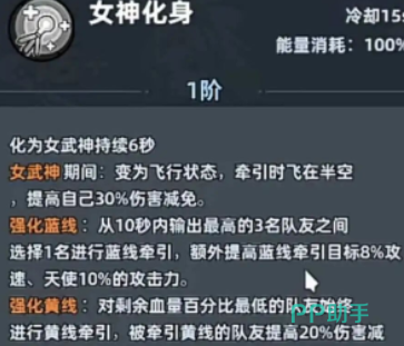 终极技能“女神化身”需消耗100%能量,开启后天使进入6秒飞行状态,自身获得30%伤害减免;强化后还可为目标队友提升8%攻击速度,并为自己增加10%攻击力。在此期间,黄线牵引同步赋予被链接队友20%伤害减免效果,且天使每秒恢复80%攻击力数值的生命值,全面强化团队持续作战能力。在角色养成路径上,天使的资源倾斜方向明显区别于输出型角色:无需堆叠极致攻击力,应优先提升星级,并同步推进等级成长,以确保关键技能如天使重生、天使之杖等尽早达到高等级效果。