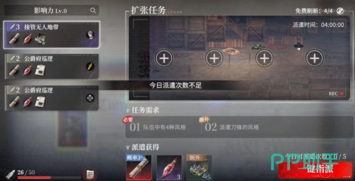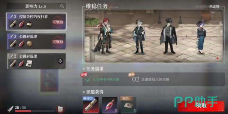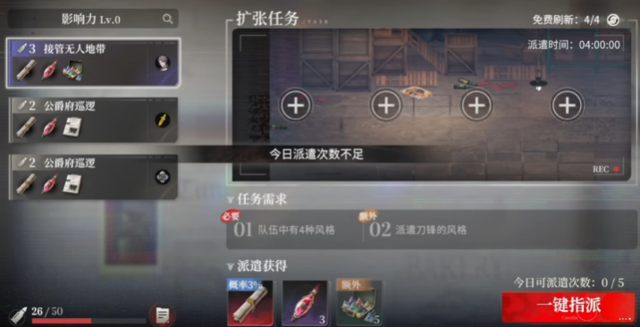 所谓“排班”,实为角色派遣任务管理模块。玩家无需操控角色进行实时战斗或复杂操作,仅需从已拥有角色中挑选四名,指派其执行指定任务。任务类型涵盖夜间巡逻、区域探索、情报搜集等轻量级行动,每项任务均标注明确的持续时长与对应奖励。角色出发后将自动执行全程,倒计时结束后即时返程,资源直接发放至背包,全程无需手动干预。