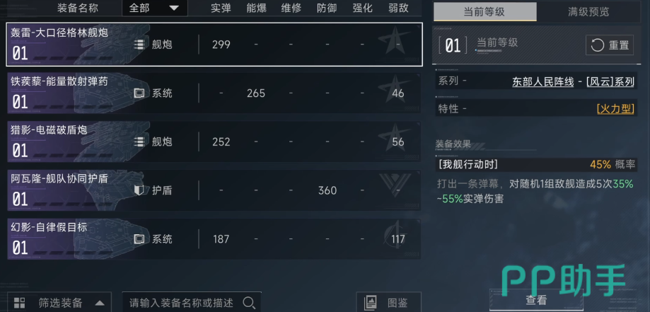 除编队层面的整体强化外,游戏还设有深度装备养成系统。每艘战舰均可装配主炮、副炮、护盾发生器、引擎模块等多类部件,各装备均标注明确的基础属性与成长系数。通过消耗资源进行逐级升级,可显著提升单舰的攻击强度、能量充能速率、装甲抗性等维度表现。战斗过程以自动弹道演算呈现,实际伤害由舰体属性、装备加成、阵型增益及敌方弱点匹配度共同决定。