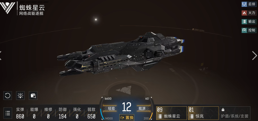 在模块装配策略上,应优先强化【实弹】属性——这是蜘蛛星云的核心输出维度。推荐选用提供实弹加成的模块,如“脉冲供弹阵列”“高容弹仓核心”等。同时,该舰自身具备较快的弹药回复机制,支持多模块叠加配置。在防御维度,建议补充具备护盾强度、能量抗性或规避率提升效果的模块,尤其当队伍缺乏专职护卫舰时,强化驱逐舰生存能力可显著延长整体作战续航时间,避免关键输出单位过早被集火击毁。