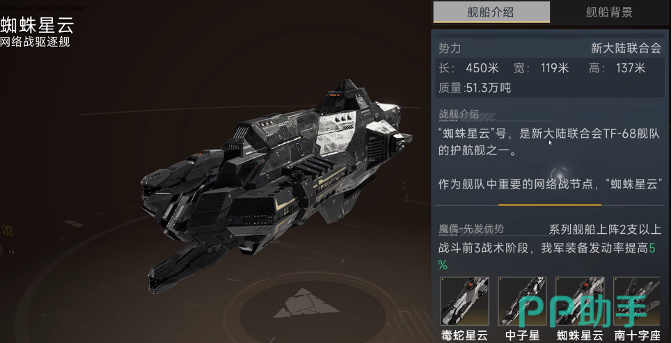 综上所述,蜘蛛星云虽获取门槛较高,但其战略价值突出,适配性强,属于值得长期投入资源培养的高优先级战舰。游戏前期提供的基础舰船性能普遍有限,需依赖模块装配与等级提升逐步优化;而蜘蛛星云凭借先天优势,在合理配置下,可在各阶段战斗中持续发挥稳定且高效的作战效能。