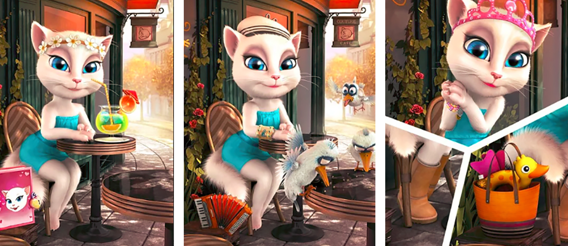 《我的安吉拉》创建起一个更加细致的三维模拟世界,把玩家从对话者变成了全方位的守护者和造型师。玩家在游戏中可以见证安吉拉从不懂事且幼稚的猫咪,成长为端庄有礼且举止有节的都市女郎,玩家们需要照顾安吉拉,体验从喂奶、哄睡到洗澡、刷牙等玩法。游戏主要特点就是非常自由的换装系统和家居装饰玩法,还有上万种服饰、发型、妆容和家具配饰供玩家选择。