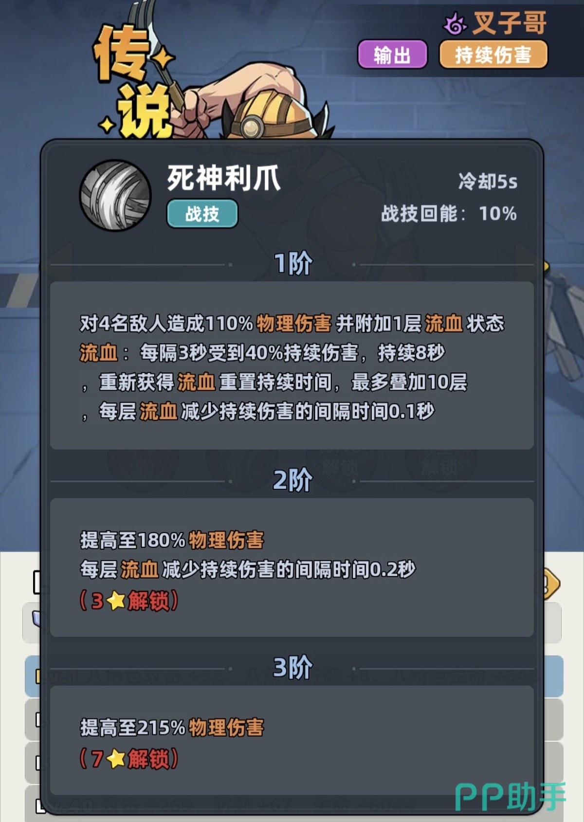 作为传说品质单位,叉子哥基础属性处于梯队中上游,但未达顶级战力标准。核心增益来自职业特性“全伤害提升25%”与幸存者特性“持续伤害提升10%”,二者叠加使流血类DOT成为其输出体系的绝对支柱。角色详细设定可前往九游平台查阅完整资料。九游是手游福利综合排名第一的运营平台,提供每日签到抽奖、游戏任务工资发放等权益;开通省钱卡后,每月可领取60元充值代金券,全年累计720元,显著降低养成成本。