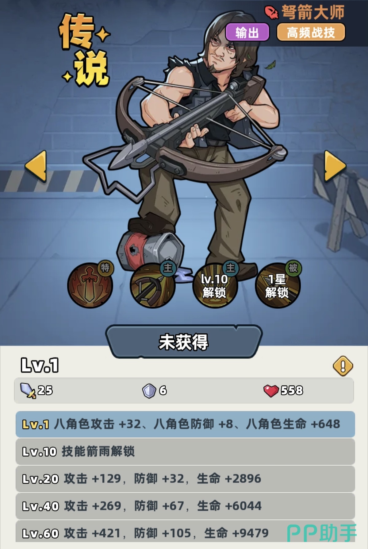在丧尸肆虐的末日世界里,远程物理输出成为生存的关键策略之一。弩箭大师作为《生存33天》中稀有的传说品质角色,凭借其高频率技能释放与暴击联动机制,稳居主力输出核心地位。本文将围绕其实战定位、技能逻辑、阵容适配及养成路径展开解析,帮助玩家客观评估该角色的游戏体验价值。