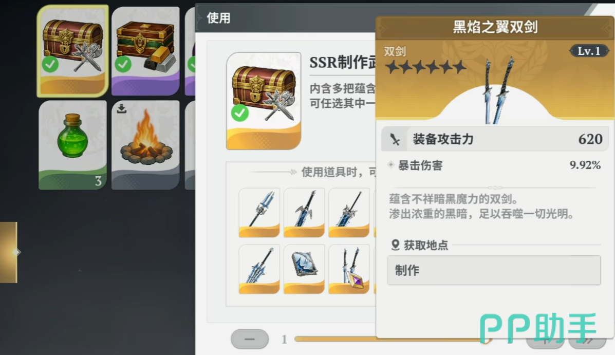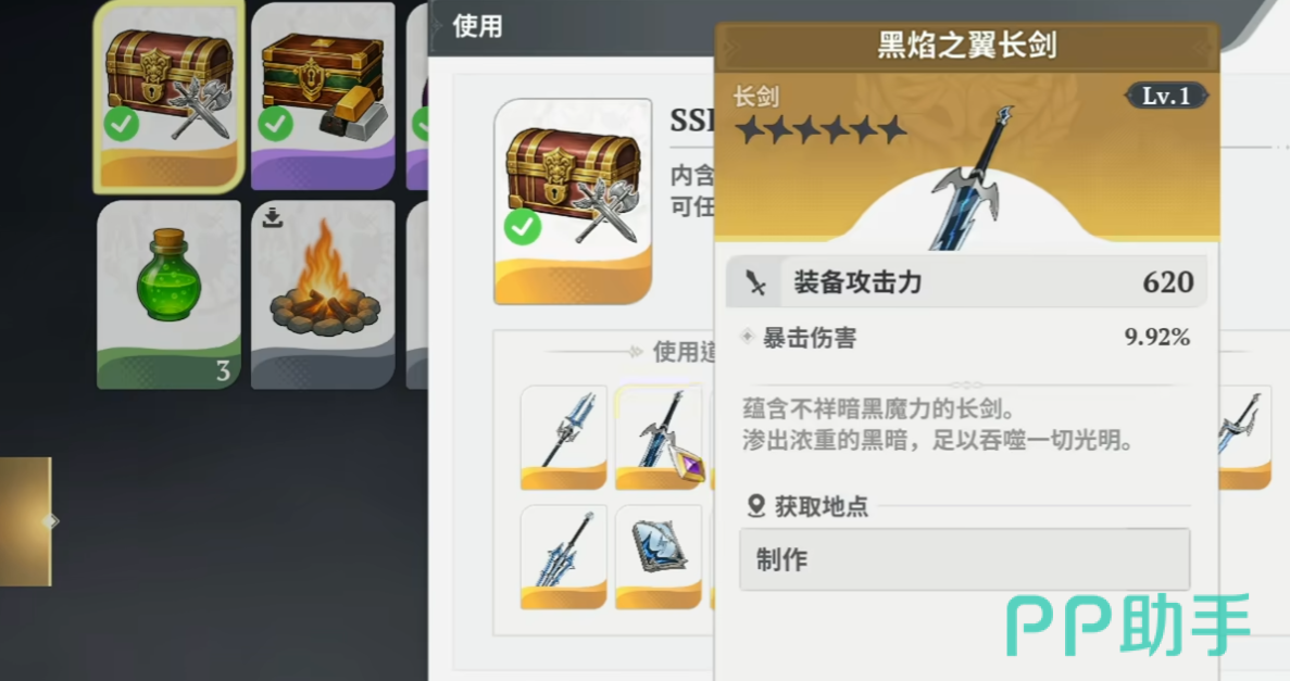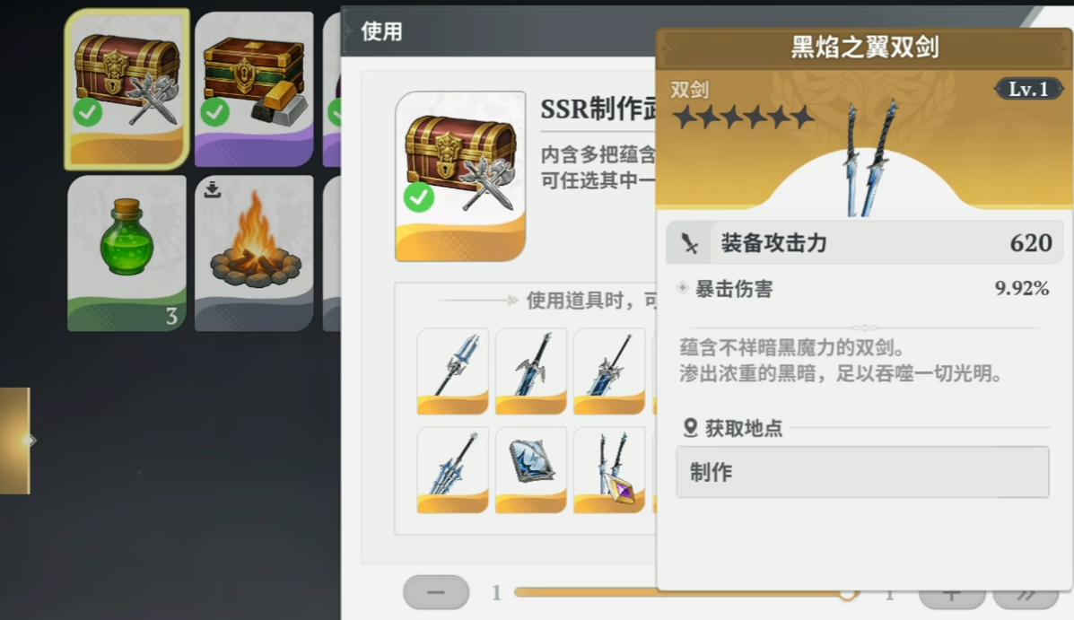 近战类武器中,黑焰之翼斧为当前版本高优先级推荐。其核心机制为:激活后20秒内提升12%至24%攻击力,并同步提高8%至20%暴击率。该增益直接作用于角色基础输出模型,尤其契合梅利奥达斯、斯莱德、艾斯卡诺等依赖短时间高爆发的近战主力。在多段连招或爆发窗口集中的战斗场景中,该武器能显著放大伤害峰值表现。