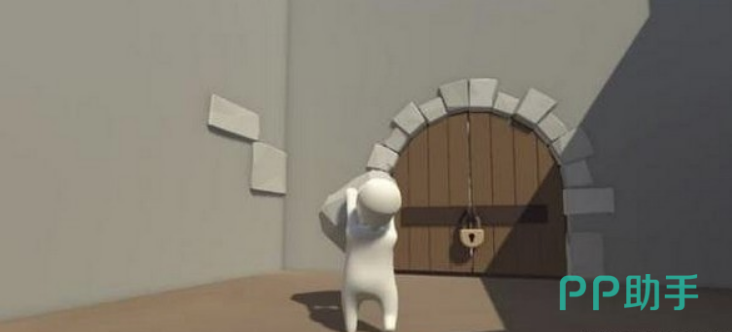 赶到城堡关卡,图为下图Bob身处的首先场景,两手拿起中间的石头冲向木门上的锁头,持续撞击3次便可将锁损坏。