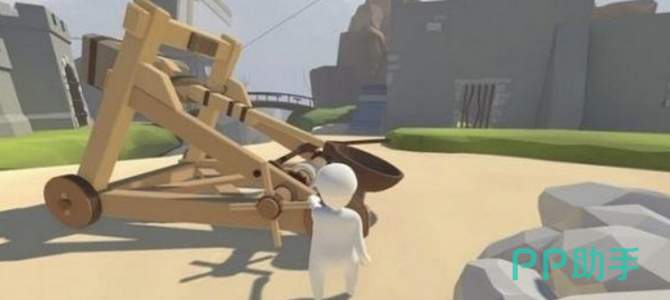 跳上投石机,用右手把投石机扳机往上拉一下下后快速放手。