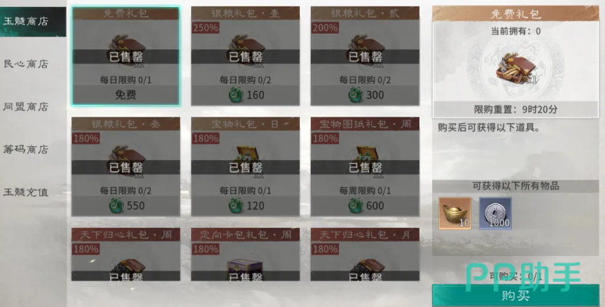 贡献商店是前期资源补给的重要渠道,战功可直接兑换木材、铁矿、粮草等基础物资,兑换物品品质随贡献等级提升而优化。玉髓商店仅支持玉髓货币交易,属于付费向内容,平民玩家建议仅在玉髓存量充足时酌情采购。筹码商店采用摇骰机制,其中征兵符为必购道具——该道具可立即补充兵力上限,对快速恢复战力具有不可替代作用。