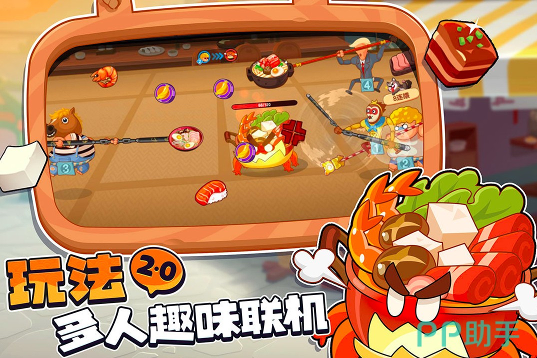 来自于吃货们的对决,手握一柄戳子直接将食物塞进对方口中,看看到底是谁先被“胖”死,拉上好基友或者是心仪女生,来上一场PK吧;Q弹软萌的画面风格从胖胖的吸血鬼,到圆滚滚的牛郎织女都可以任你挑选;2分钟的欢乐对战,让你随时随地都可以开启轻松享受;70多样的食物品类,吃货们的口水已经淌下来了吧。