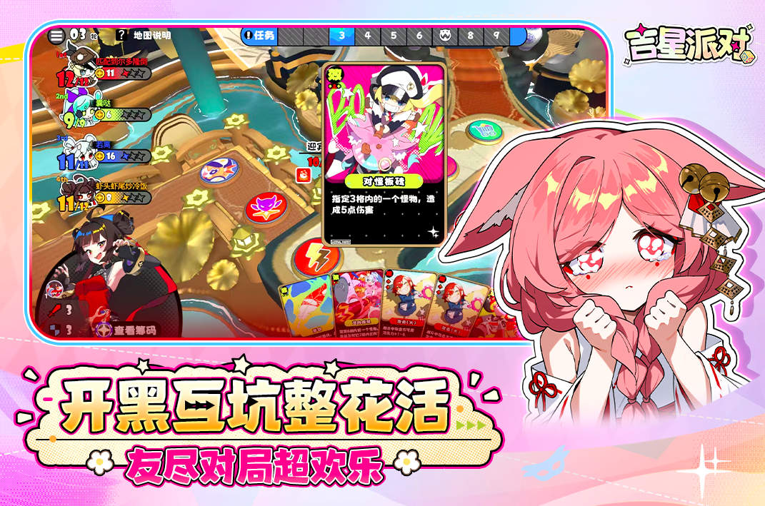 一人欢乐度不够,多人太拥挤,那四人刚刚好!《吉星派对》支持四名玩家同时在线,将大富翁玩法和派对游戏融为一体,使用角色固定技能以及手中牌卡来对好友进行实力互坑,各式各样的突发事件,让你眼镜大跌,原来这是个有友尽局呀!恶搞的卡通画风更是让玩家们爆笑不停,高效引导指南,让新手玩家也能快速上手。