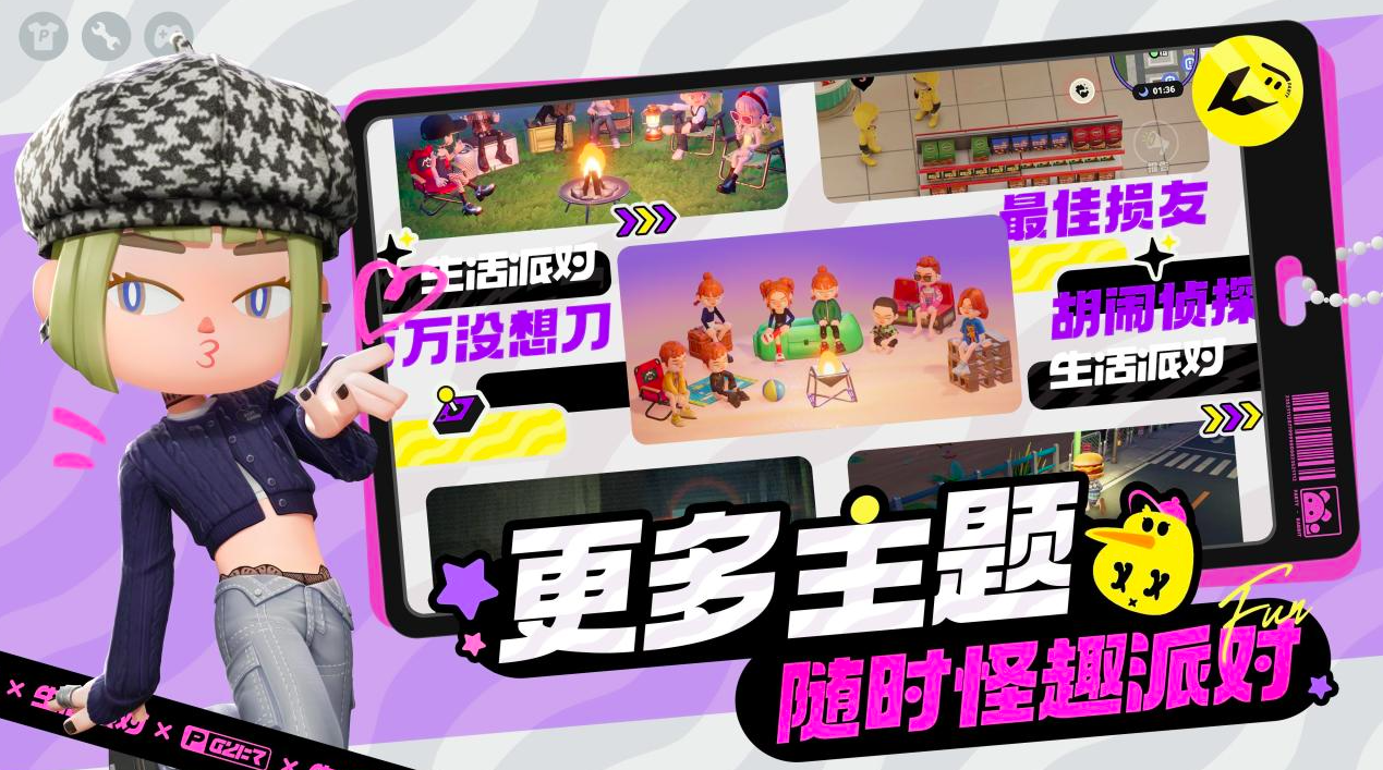 想逃离日常的高压生活,来一场轻松派对吗?《生活派对》带你开启一场别样的派对旅行,完成线上电子轰趴,赛博露营让你与小伙伴们线上钓鱼、摘果子,田园生活唾手可得;试胆大会组建成线上怪物胖揍小队,在幽暗恐怖的密室中寻找逃生之路;UGC乐园,进入“搭搭”编辑器,化身为脑洞派对创作者,打造你自己的专属派对活动。